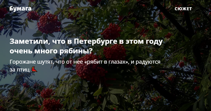 «Бумага» рассказывает об урожае рябины в Петербурге.