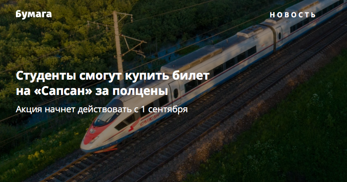 Студенты вузов смогут купить билет на «Сапсан» за полцены