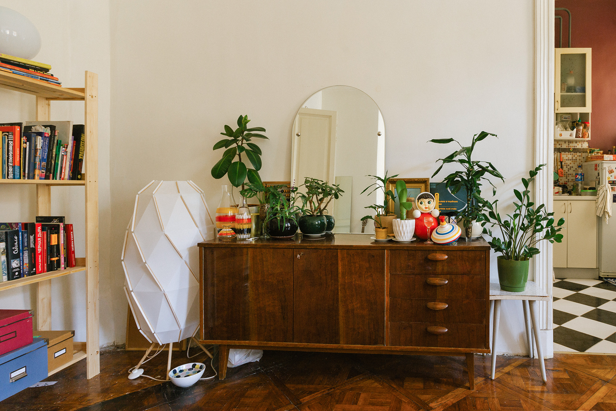 Самое классное из моей коллекции — румынский комод, который был трюмо. Без реставрации его продают за 20 тысяч, а я нашла за три. Потом еще подружке нашла такой же за пять. Еще у меня есть очень прикольный советский торшер с темными реечками из пластика, на которые я хочу приклеить шпон, чтобы было еще красивее.