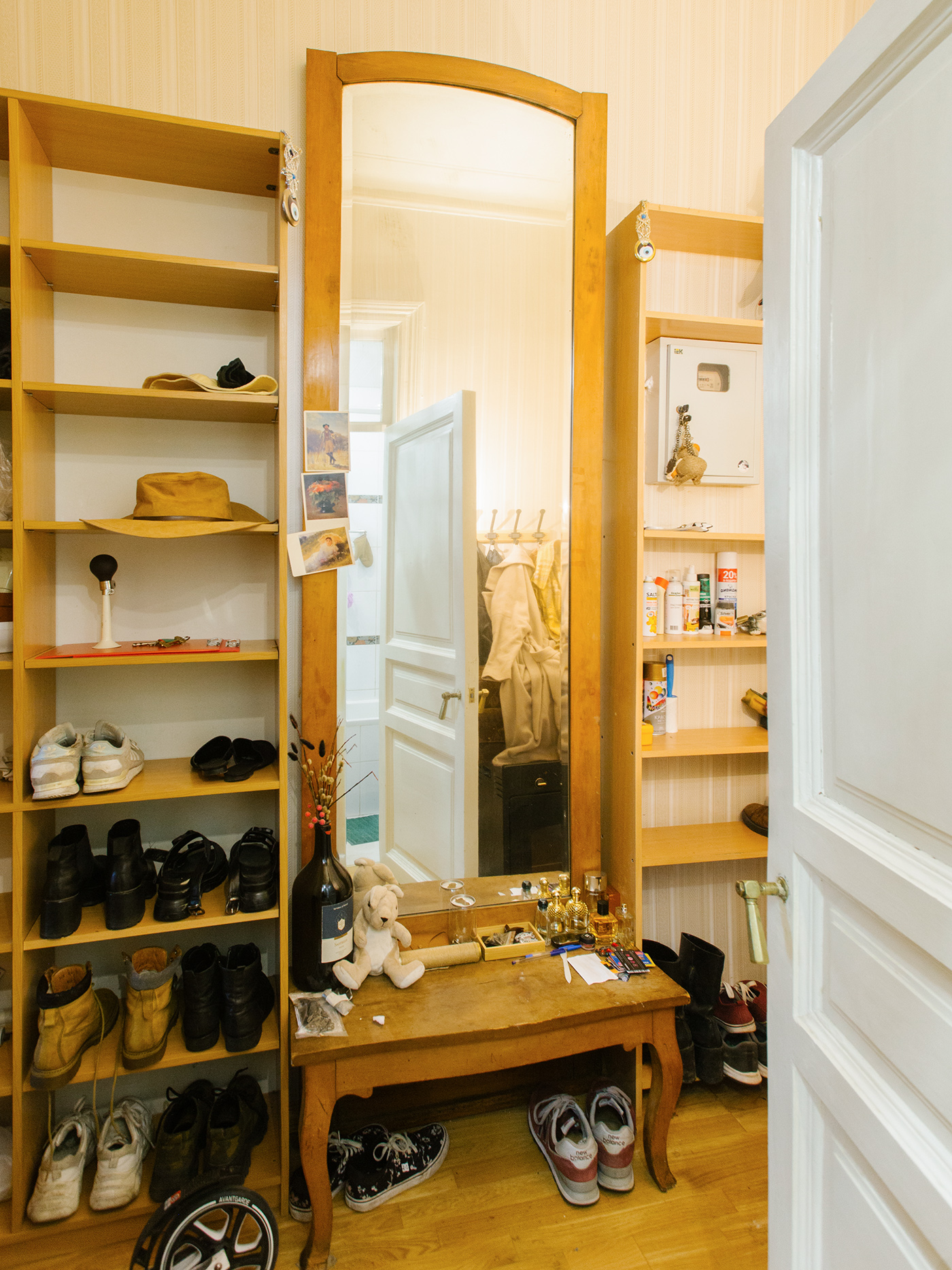 В прихожей стоит дубовое зеркало. Я увидела объявление, что его продают в моем районе и просят покупателей назначить цену. В таких ситуациях ты обычно пишешь, что хочешь купить за две тысячи, а тебе отвечают, что вообще-то продают за двадцать. Я просто хотела посмотреть, что мне ответят в этот раз, — предложила забрать за 4500, продавец сказал, что отдаст за 5 тысяч, и я согласилась. Оно почти до потолка, очень красивое, но просто гладкое, без резьбы, поэтому когда-нибудь я найду для него украшения — запчасти от другого зеркала.