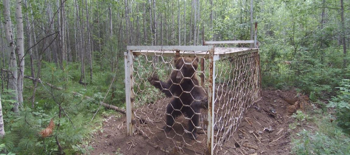 Приангарье: спасли медведя, умирающего в клетке посреди леса