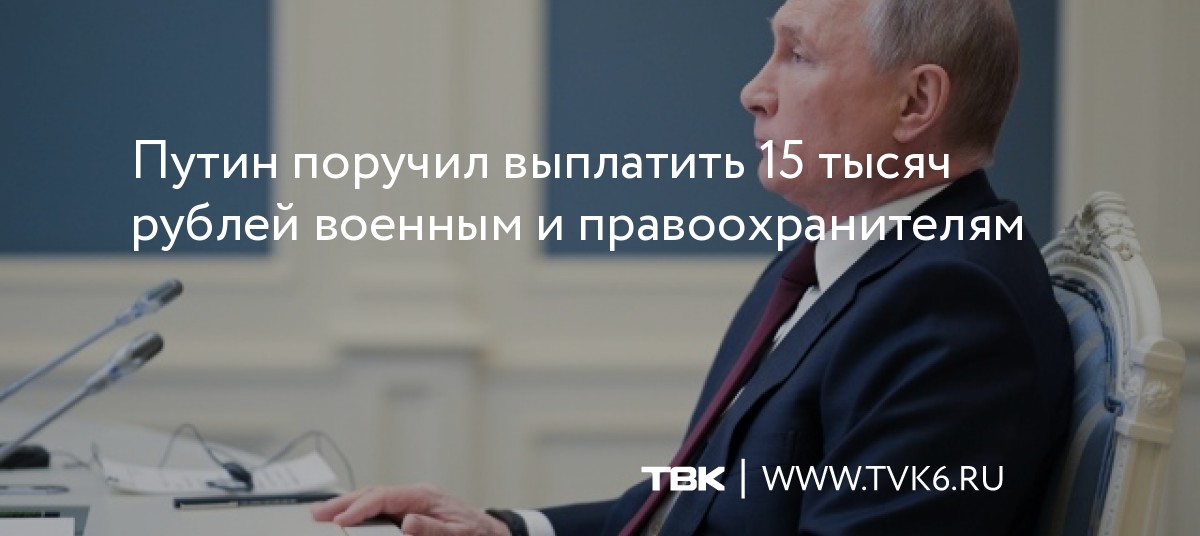 Путин поручил выплатить 15 тысяч рублей военным и правоохранителям