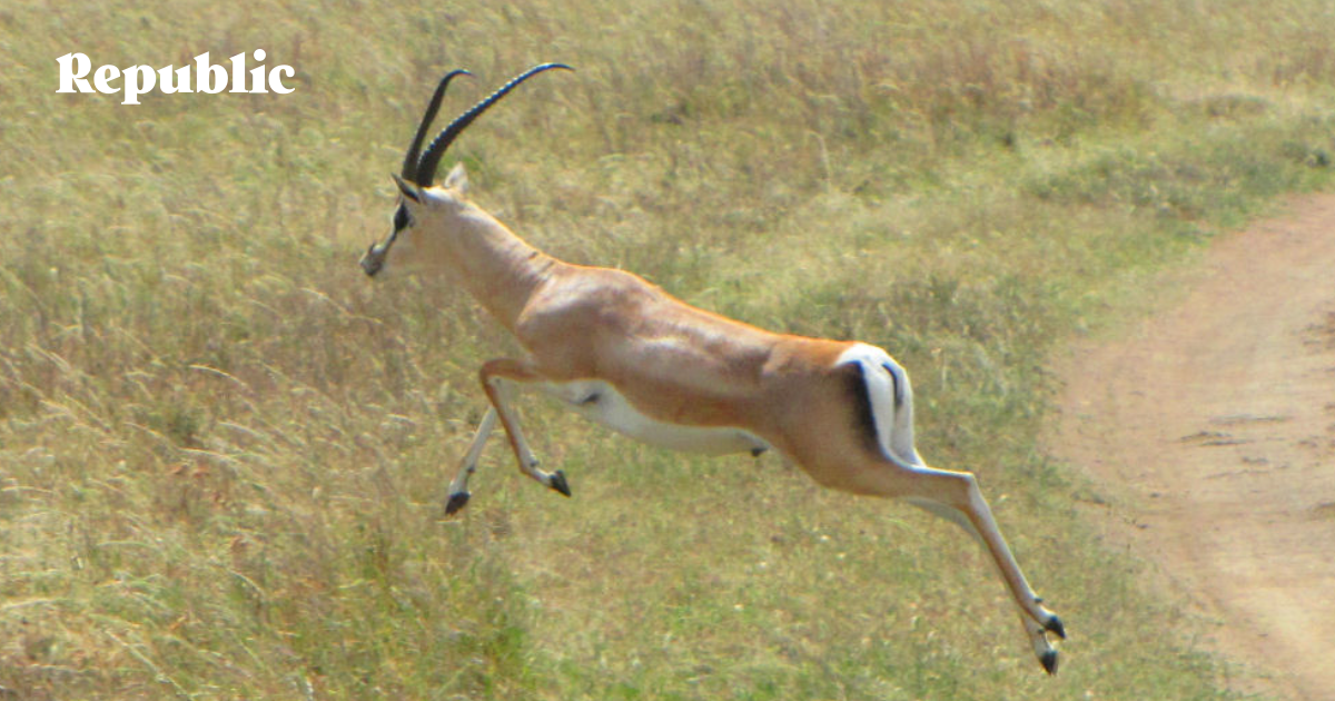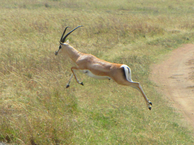 Сигнальная теория: самые сильные и быстрые антилопы высоко подпрыгивают, чтобы показать хищникам свою мощь и ловкость. "Охотиться на меня бесполезно!"