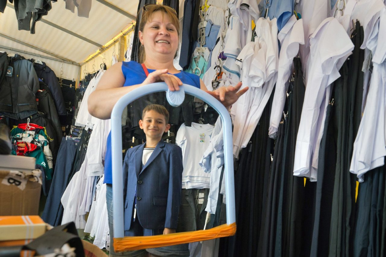 Симферополь. Мальчик мерит форму на школьной ярмаркеФото: Сергей Мальгавко / ТАСС — Школьная форма на ребенка стоит минимум 2 тысячи рублей, самый дешевый рюкзак для школы — тысячу рублей, еще необходимы несколько пар обуви и спортивная форма, — Елена приводит цены магазинов и рынков Тверской области.