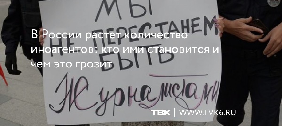 Сейчас журналисты говорят, что никогда не испытывали такого давления. А законодательство об иностранных агентах написано так, что ими могут признать вообще любых россиян. Достаточно получить деньги из-за границы, например, перевод от родственников, иностранную премию или стипендию, дивиденды от акций не российских компаний. Более того, иноагентом можно стать, получая зарплату в компании с иностранным участием. Таких красноярцев не мало, учитывая, что крупнейшие краевые энергетические и металлургические компании зарегистрированы в офшорах.
