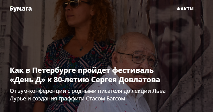 3 сентября. Спектакль «Компромисс» о жизни писателя с 1975 года от Казанского студенческого театра «Другое слово» в «Вавилов Лофте» на Кадетской линии. Начало — в 13:00.