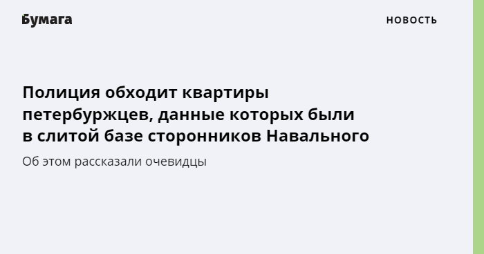 Полиция Петербурга начала обходить квартиры горожан, чьи данные оказались в слитой базе сторонников Алексея Навального. Об этом рассказала читательница «Бумаги» и другие очевидцы.