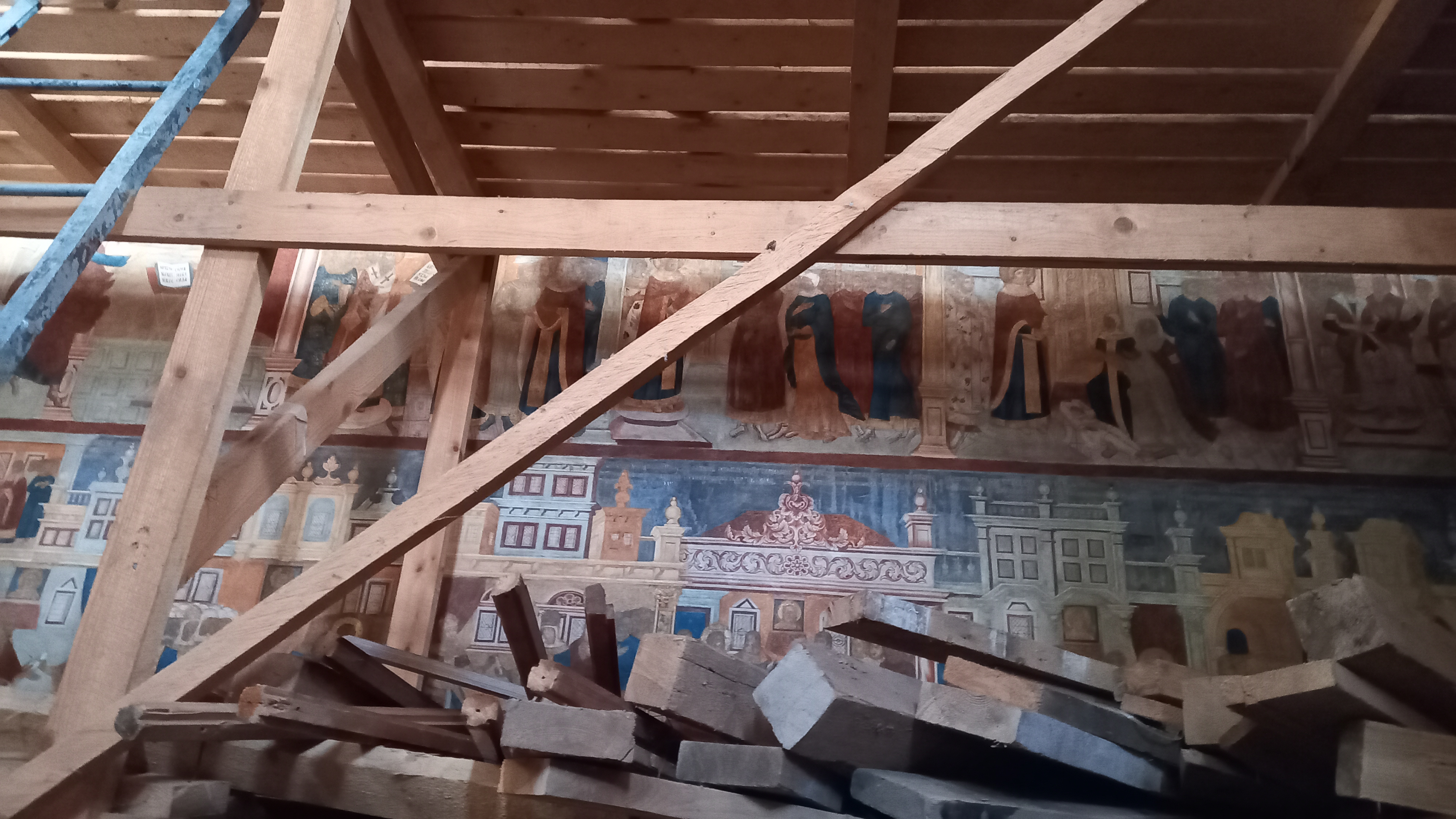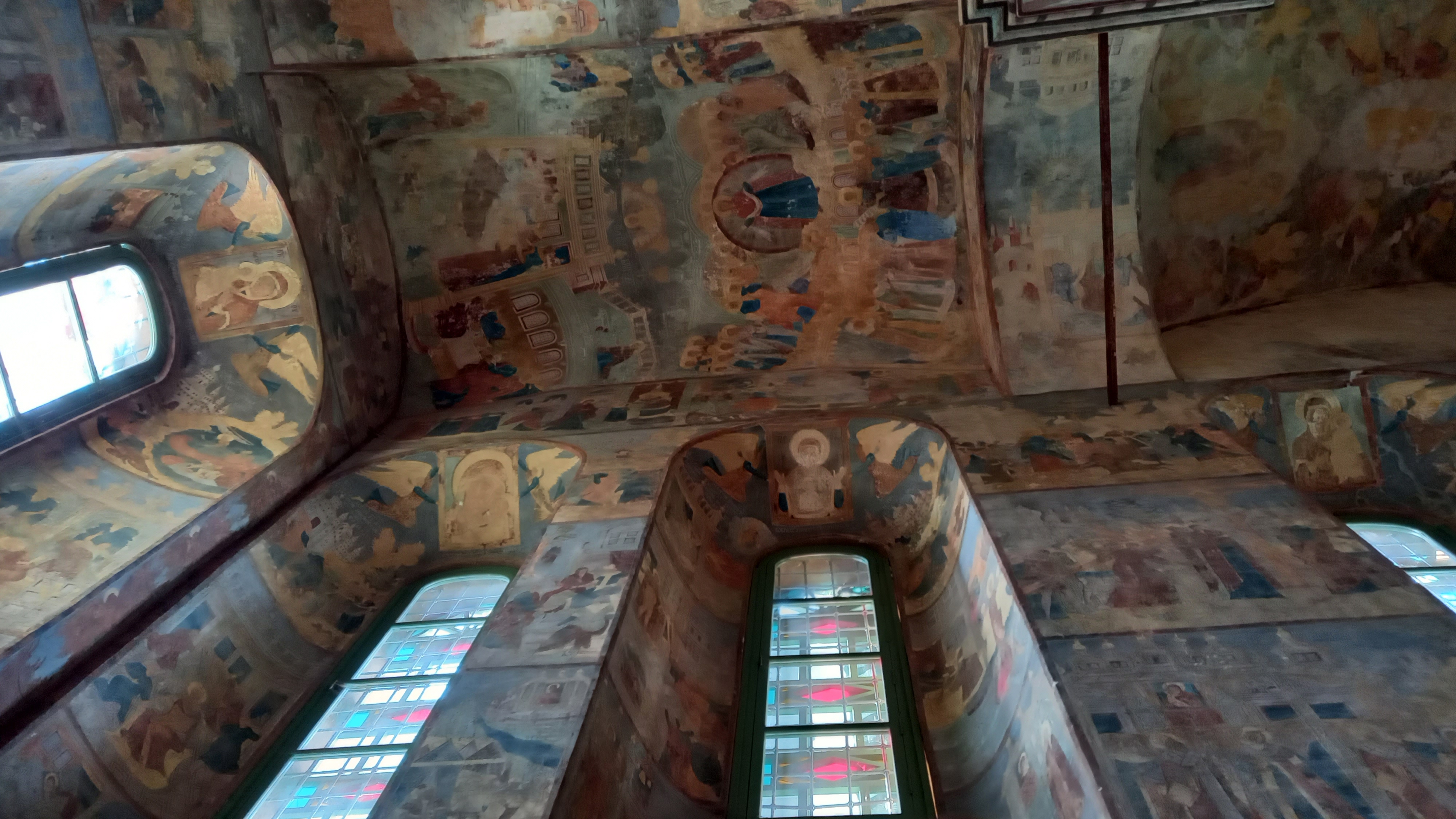 В галерее храма прекрасный музей, но он больше не действует, куда денут экспонаты, неясно. Но это еще полбеды, настоящая беда внутри, под лесами. В храме сохранились фрески XVII века, и прекрасно сохранились – это великое наследие, которое, кому бы этот храм ни передавали, принадлежит всем – христианам и мусульманам, буддистам и последователям Летающего Макаронного Монстра, верующим и не верующим, гражданам России и всего мира.