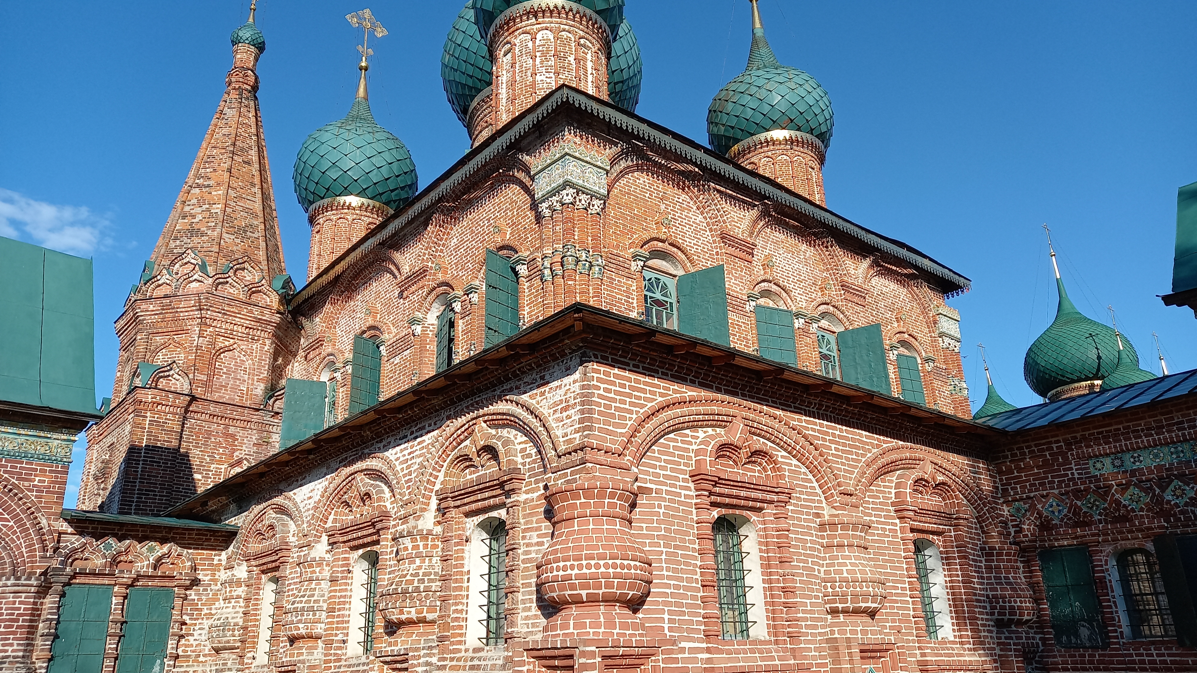 Да, вот еще о церквях. Восстанавливаться-то они восстанавливаются, но иногда думаешь – лучше бы не трогали, целее будет. Приехали в ярославский храм Иоанна Богослова в Коровниках – а музей закрыт. Храмовый комплекс обнесен строительным забором, но где-то сзади ворота все же не заперты. Вошли – никого, тишина. Вспомнили объяснения музейщиков по поводу многих храмов, в которые, как только их передали Церкви, стало не попасть. Но мы туда проникли, а как – не скажу, чтобы не подводить никого из местных.