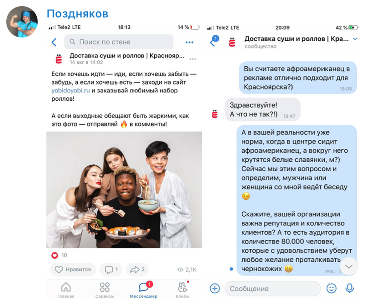 «И если недавний кейс „Вкусвилл“ еще можно хоть как-то логически осознать (не понять, не поддержать, а просто рассмотреть в контексте общей консервативности и последних „запретительных“ мер), то почему в 2021-м в России у кого-то вызвал негатив темнокожий человек — неясно», — отметил бизнесмен в посте на сайте vc.ru. В разговоре с изданием «Секрет фирмы» он добавил, что экстренно застраховал свою квартиру и собирается обратиться в полицию.