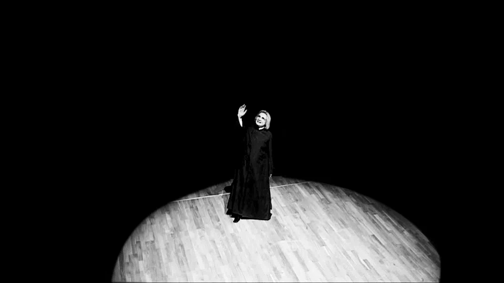 Как бы ни пряталась под маской Посторонней, фильм высвечивает притягательную силу актрисы, моменты ее восхитительного и трагического романа со сценой или камерой. Ее гретогарбовскую холодность, плавящуюся в «сверхчувственных энергиях» и странных сближениях с гениями. Ее жертвенность. «Железная леди», умеющая держать дистанцию между собой и ролью, готова выкладываться до последнего, рискуя собой. В «…Каменном госте» Анатолия Васильева она, едва придя в себя после двух операций, спасала спектакль танцем с кастаньетами, вбивая каблуками в дощатый пол смерть, крик боли.