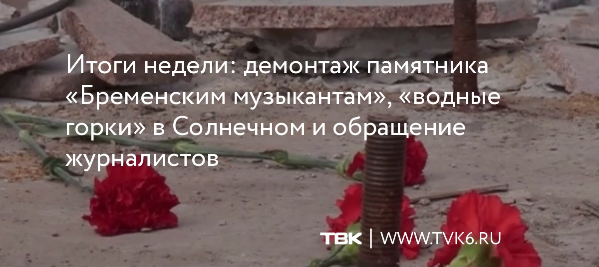 Итоги недели: демонтаж памятника «Бременским музыкантам», «водные горки» в Солнечном и обращение журналистов