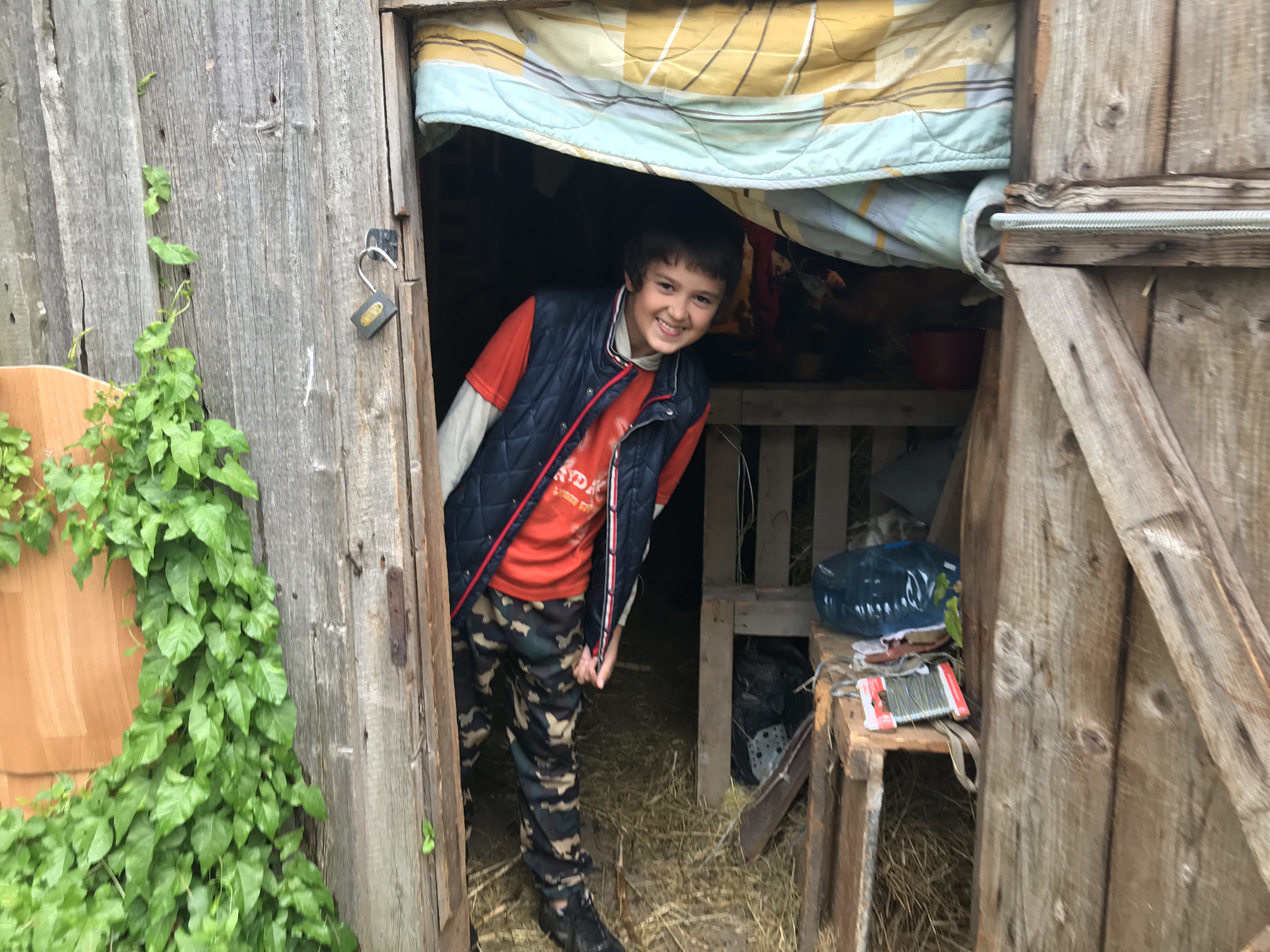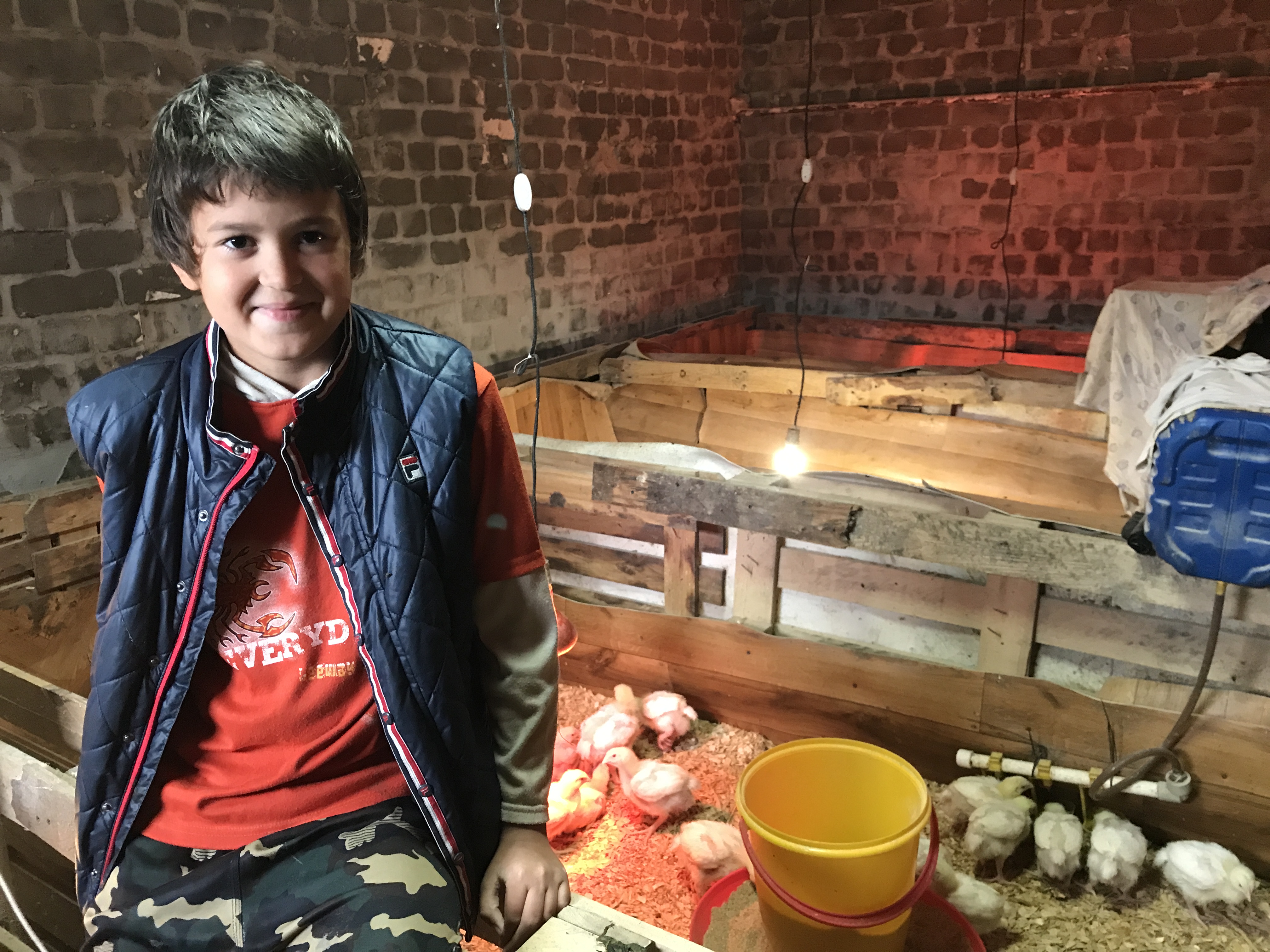 Алику уже исполнилось 10 лет. Каждый день он работает с мамой на ферме. Всех животных надо накормить, выпасти, а коз еще и подоить. Гусей, кур, перепелок Алик знает по именам, ухаживает за всем хозяйством, убирает курятник и загоны для коз. Одних кур на ферме уже около 30, а есть еще несколько десятков перепелов, пара гусей и кролики. В теплице из той самой первой рассады с подоконника растут овощи.