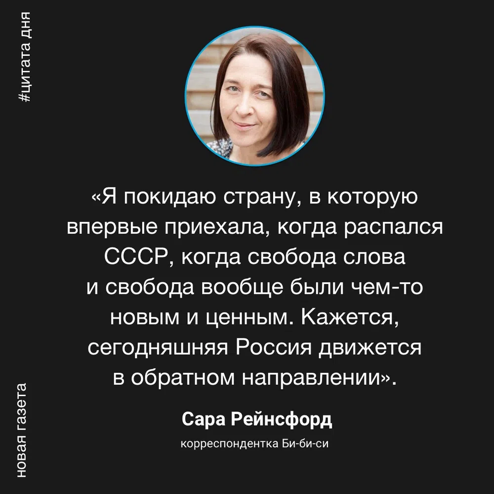Московский корреспондент «Би-би-си» Сара Рейнсфорд покинула Россию по предписанию властей. Она проработала в стране около 20 лет