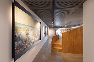 Но есть тут тема, имеющая отношение к реальной истории места. Это совсем не греческий, но еврейский след, который исследуют и Алексей Кононенко, покрывая фроттажем листы, наложенные на рельефы надгробий, и все та же группа «Ху», печатая те же изображения на флагах, и Александр Мареев, сделавший для выставки в галерее винодельни серию акварелей «Менора, Лулав, Шофар».