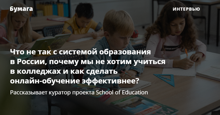 — Система образования в нашей стране представлена очень большим количеством разных людей, которые решают разные задачи. Точно есть задачи политического характера, и они не очень имеют отношение к качеству и результатам обучения.