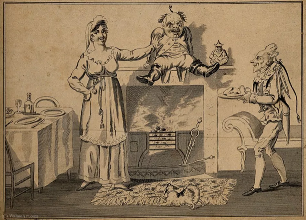 Baron Donder-Dronk-Dickdorf and Miss Quoltz, a scene from a musical drama. Etching, 1810, attributed to I.R. Cruikshank and / or George Cruikshank