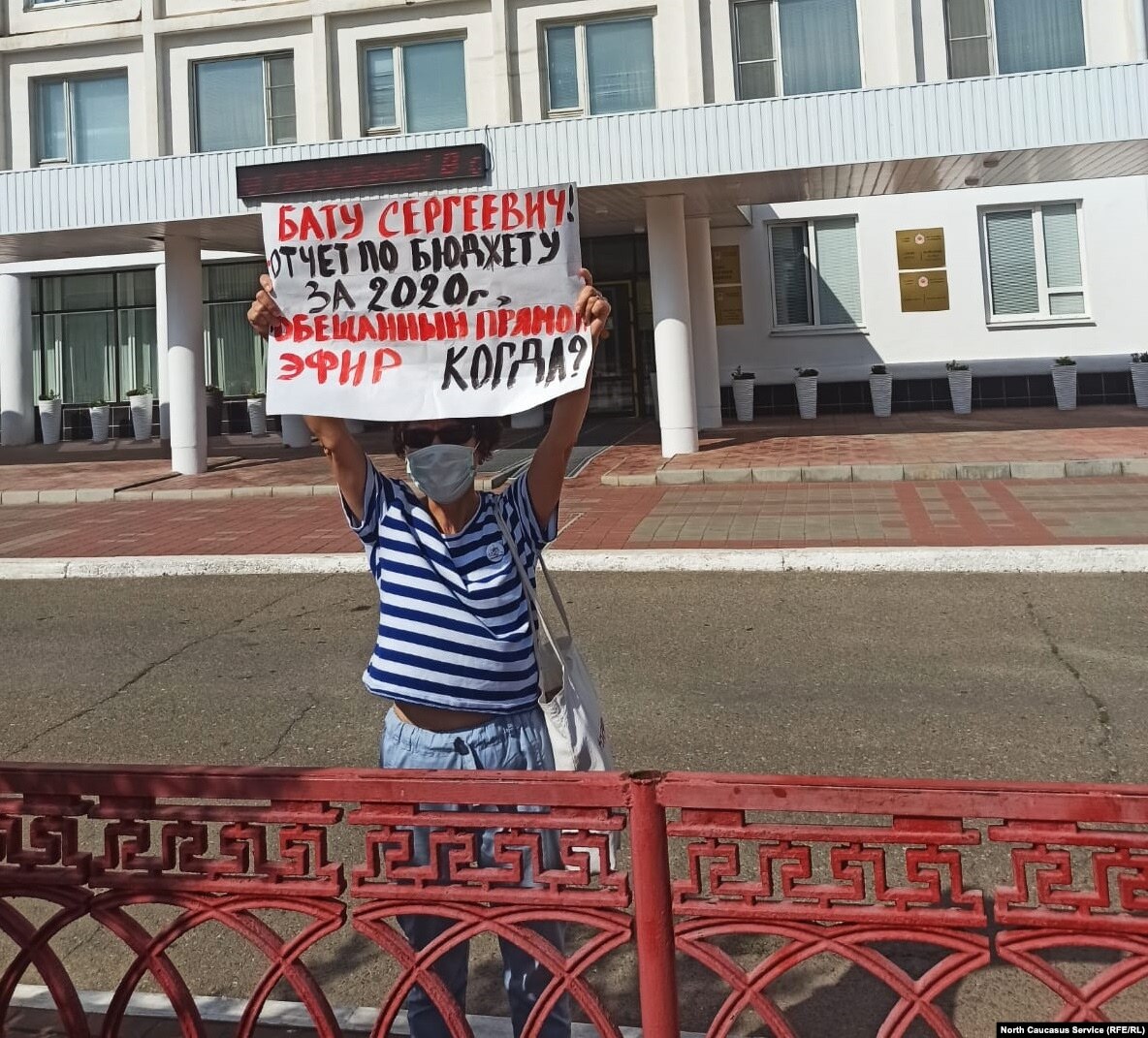 Валентина Эрдниева отметила, что ранее регулярно выходила на пикеты по различным общественно-политическим проблемам Калмыкии и не привлекалась за это к административной ответственности, так как по закону одиночные пикеты не требуют согласования с органами власти.