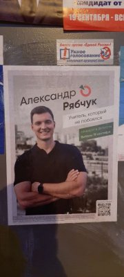 На фотографии изображен плакат в поддержку кандидата в депутаты Александра Рябчука, в штабе которого работает Насибян. Сбоку от плаката также заметна наклейка «Умного голосования».