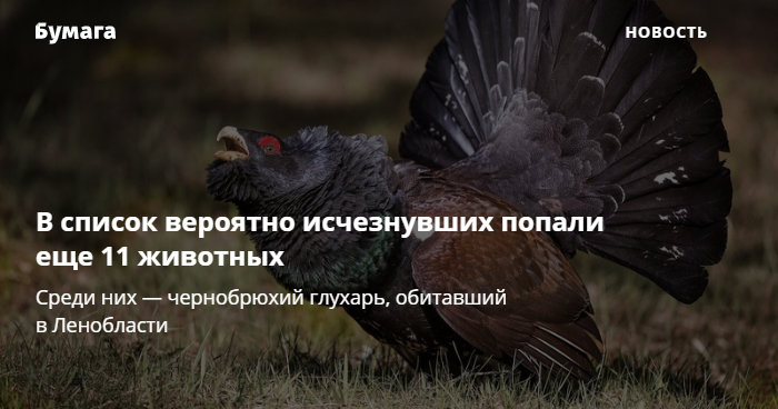 Минприроды РФ после последней инвентаризации включило в перечень вероятно исчезнувших еще одиннадцать видов животных. Об этом пишет «Коммерсантъ» со ссылкой на ведомство.