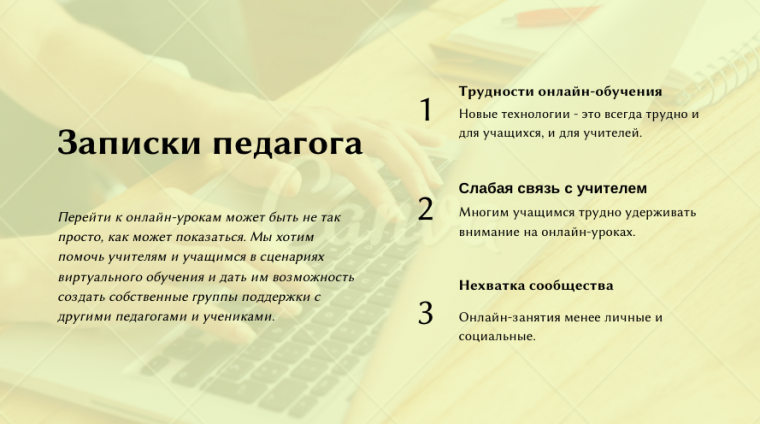 Шрифт для презентации, который ассоциируется с обучением, школой и педагогикой. Попробуйте этот шаблон, если готовите образовательные материалы и хотите эффективно разместить большое количество текста.