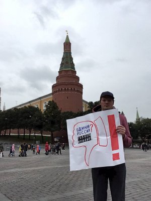 В центре Москвы задержали пикетчика Максима Волкоморова с плакатом против «Единой России». Об этом ОВД-Инфо сообщил сам задержанный