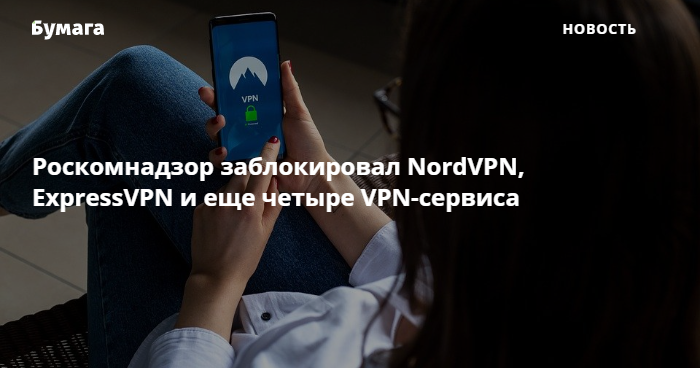 Роскомнадзор объявил о блокировке шести VPN-сервисов в России. Среди них — NordVPN, ExpressVPN, KeepSolid VPN Unlimited, Speedify VPN, IPVanish VPN, Hola!VPN, говорится на сайте ведомства.