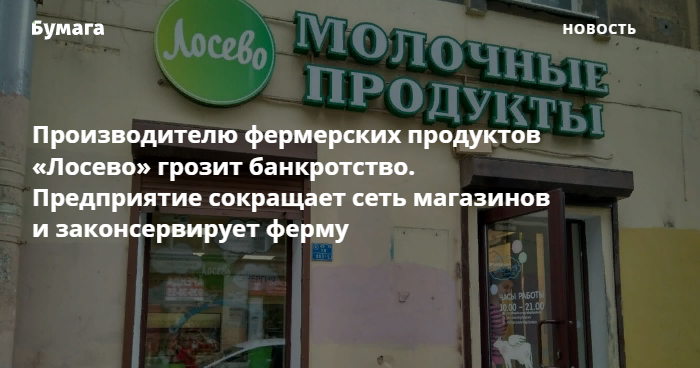 По словам Булгаковой, улучшить финансовое положение «Лосево» рассчитывает за счет продажи крупного рогатого скота, консервации фермы, перехода на закупку молока у поставщиков, сокращения количества магазинов фирменной сети и акцента на сетях-партнерах. Булгакова добавила, что «Лосево» уже закрыло пять магазинов. Продолжают работу четыре магазина в Петербурге и Ленобласти и две автолавки.