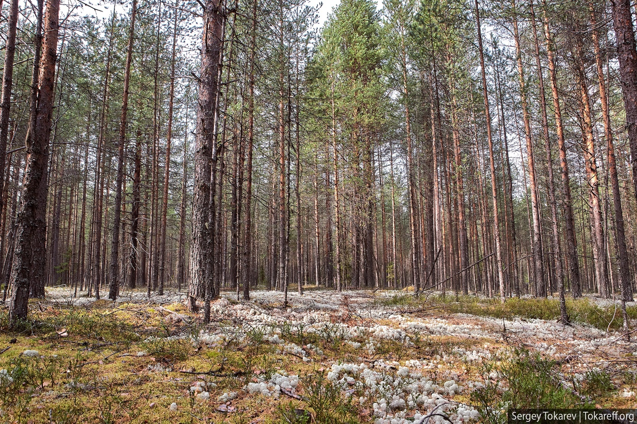 В районе сел Помоздино, Модлапол, Ягкодж очень классная природа. Песчаная почва, на которой растут хвойные леса, в основном ель и сосна. Подлеска в виде кустов нет, только тонкий слой мха, на котором брусника, черника и куча грибов. Белые грибы в сезон отсюда вывозят фурами. А еще Ягель. Этот лишайник тут везде. В таком лесу хочется сидеть вечно. Очень светло, чисто и аромат, что не надышаться.
