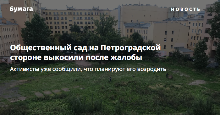 Общественный сад на Петроградской стороне выкосили после жалобы