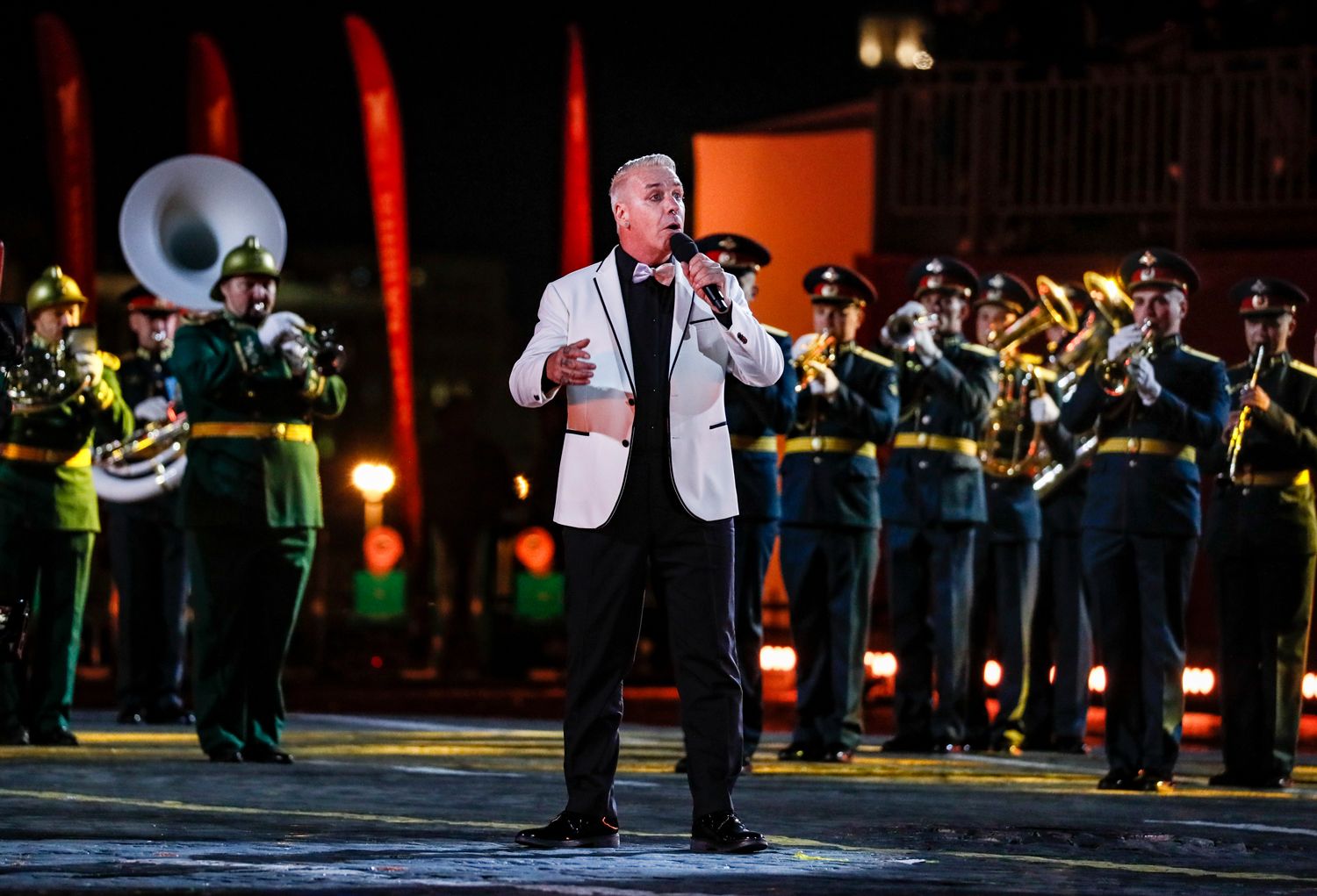 Тилль Линдеманн выступил на Красной площади. Увы, без Rammstein — зато сразу с тремя российскими военными оркестрами