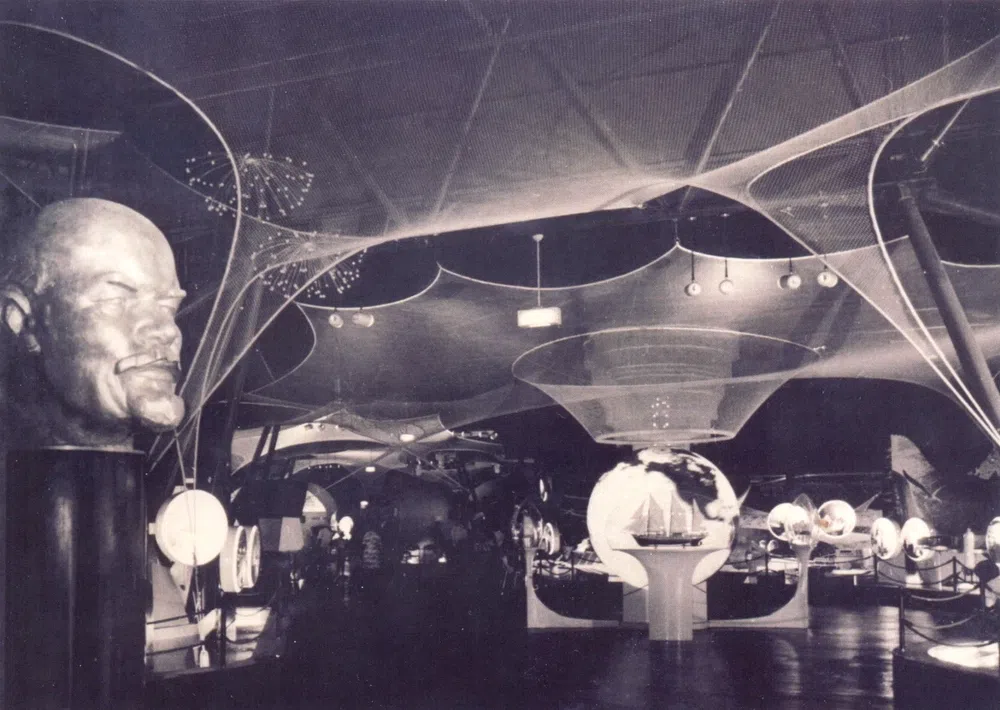 Мне посчастливилось видеть это чудо. Незабываемое было зрелище! Модель из вантово-стержневых конструкций казалась гигантским невесомым воздушным шаром, хотя на самом деле весила тонны. Эта модель, между прочим, попала тогда на советскую почтовую марку, выпущенную к очередной Всемирной выставке. Для советского павильона на следующей Всемирной выставке, на Окинаве, посвященной освоению и охране Мирового океана, В. Колейчук и Ю. Шалаев создали сверхлегкое сетевое покрытие, которое охватывало всю экспозицию и рождало образ единой, напряженной «сети» жизни: прерви одну нить — рухнет целое. Даже профессионалам было непонятно, как это было сделано. А сделано это было в соответствии с формулами великого русского математика П. Чебышева, полученными при исследовании сетчатых поверхностей и позволявшими описать любую геометрическую конфигурацию.