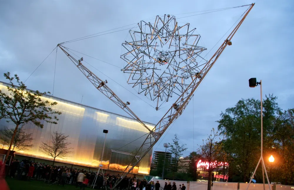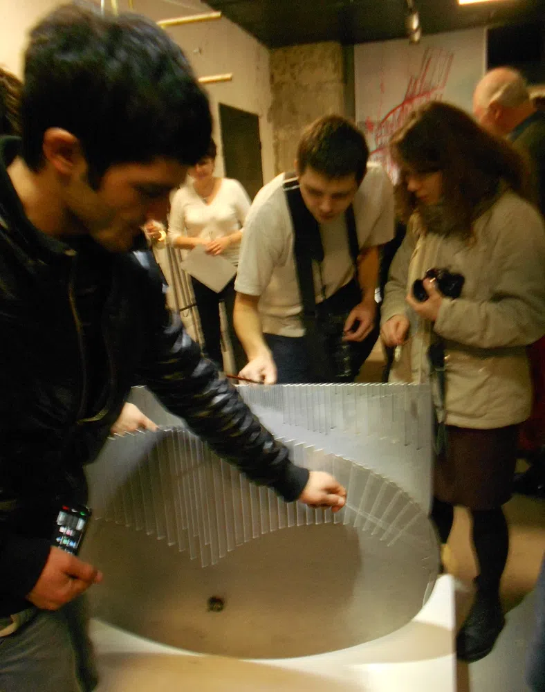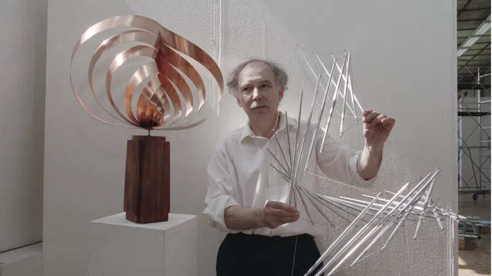 Еще будучи студентом МАРХИ, он получил патент на изобретение самонапряженных и «самовозводящихся» конструкций и вантово-стержневых структур. А в 26 лет реализовал один из самых дерзких своих проектов — установил 13-метровый вращающийся и звучащий «Атом» перед зданием Курчатовского института. Он же — создатель гравицапы для легендарного фильма «Кин-дза-дза». Десятки неординарных работ представлены на выставке как в отдельных залах, так и внутри постоянной экспозиции новой Третьяковки, на фоне работ Малевича и Кандинского.