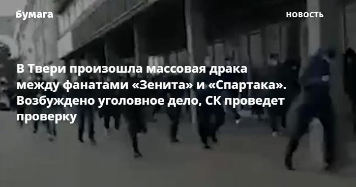 В Твери произошла массовая драка между фанатами «Зенита» и «Спартака». Возбуждено уголовное дело, СК проведет проверку