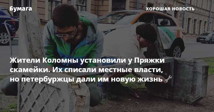 Жители Коломны своими силами установили в своем районе две скамейки. Как говорится в инстаграме сообщества местных жителей «Добрососедство Коломны», скамейки появились на набережной Пряжки.