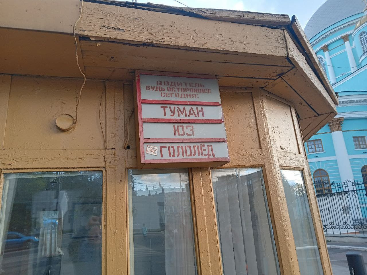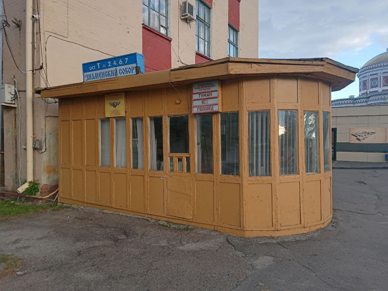 Картина первая. Конечная "Знаменский собор". Если проводить параллели с Воронежем, то у нас аналогичная конечная — это ВГУ. Так вот, на конечной стоит диспетчерская. Да, старенькая, можно сказать даже древняя. Деревянный павильон с советскими еще вывесками. Но павильон покрашен, вокруг чисто, внутри работает диспетчер, стоят холодильник и микроволновка. В Воронеже на университетской площади диспетчерская была на первом этаже каменного здания, вот только сейчас там "уролог/андролог". А в туалет водители ходят или в синюю кабинку, цепью пристегнутую к дереву, или... в люк троллейбуса.