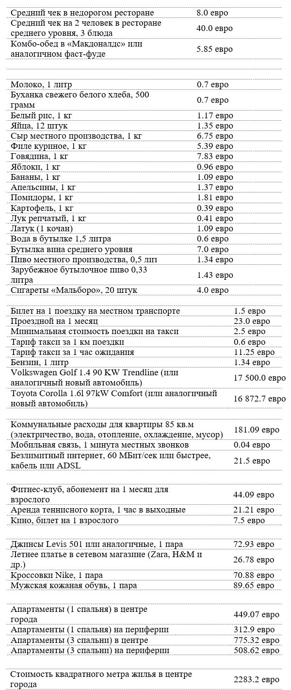 ЦЕНЫ В ЭСТОНИИ (по данным сайта e-migration.ru)