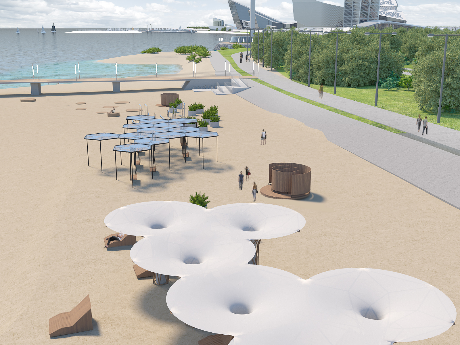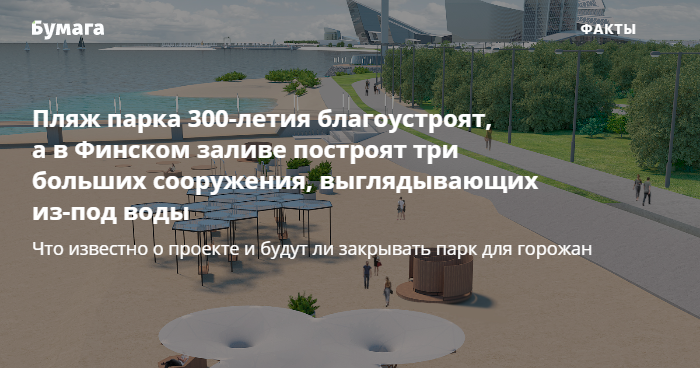 Пляж парка 300-летия благоустроят, а в Финском заливе построят три больших сооружения, выглядывающих из-под воды. Что известно о проекте и будут ли закрывать парк для горожан
