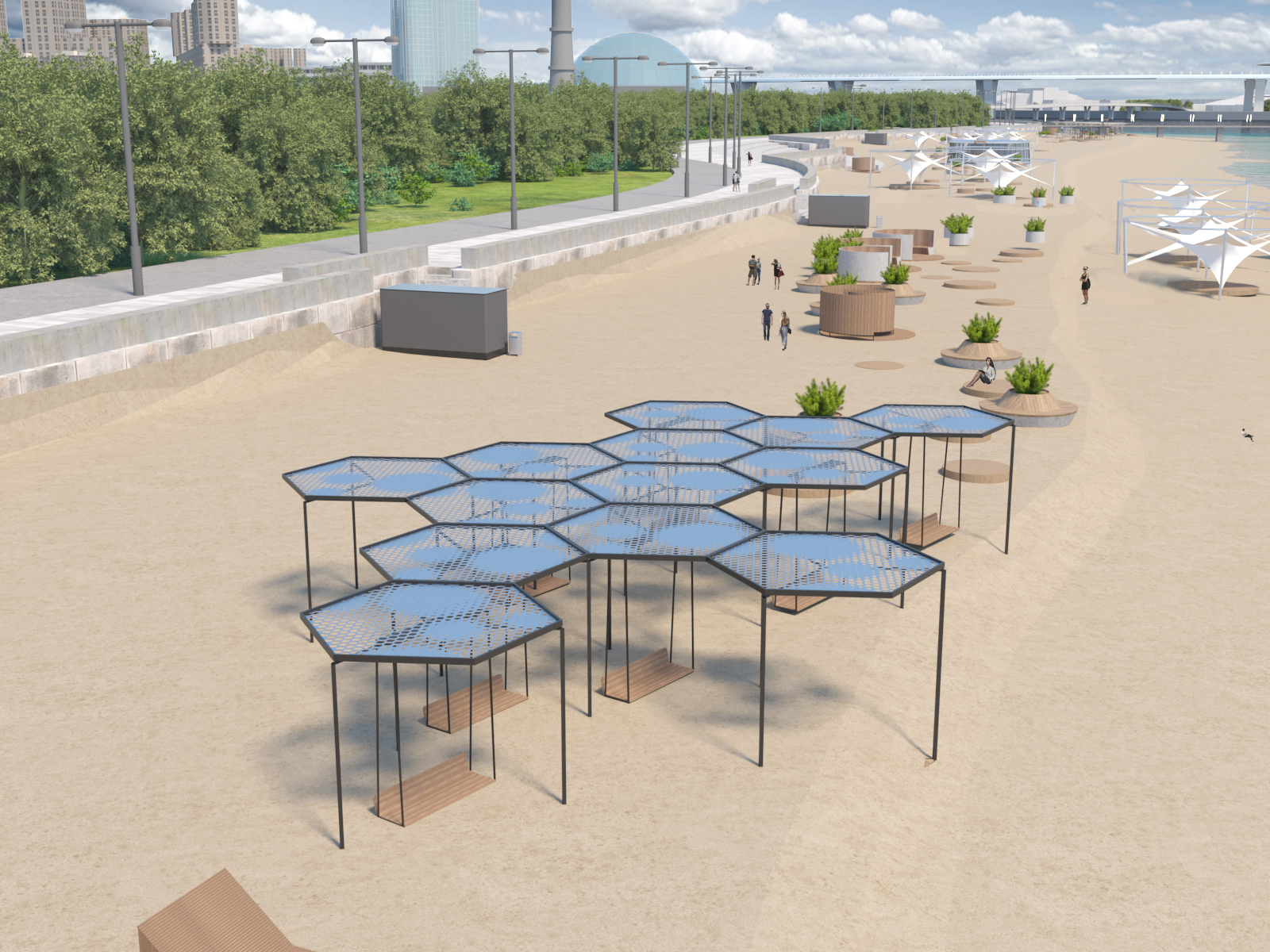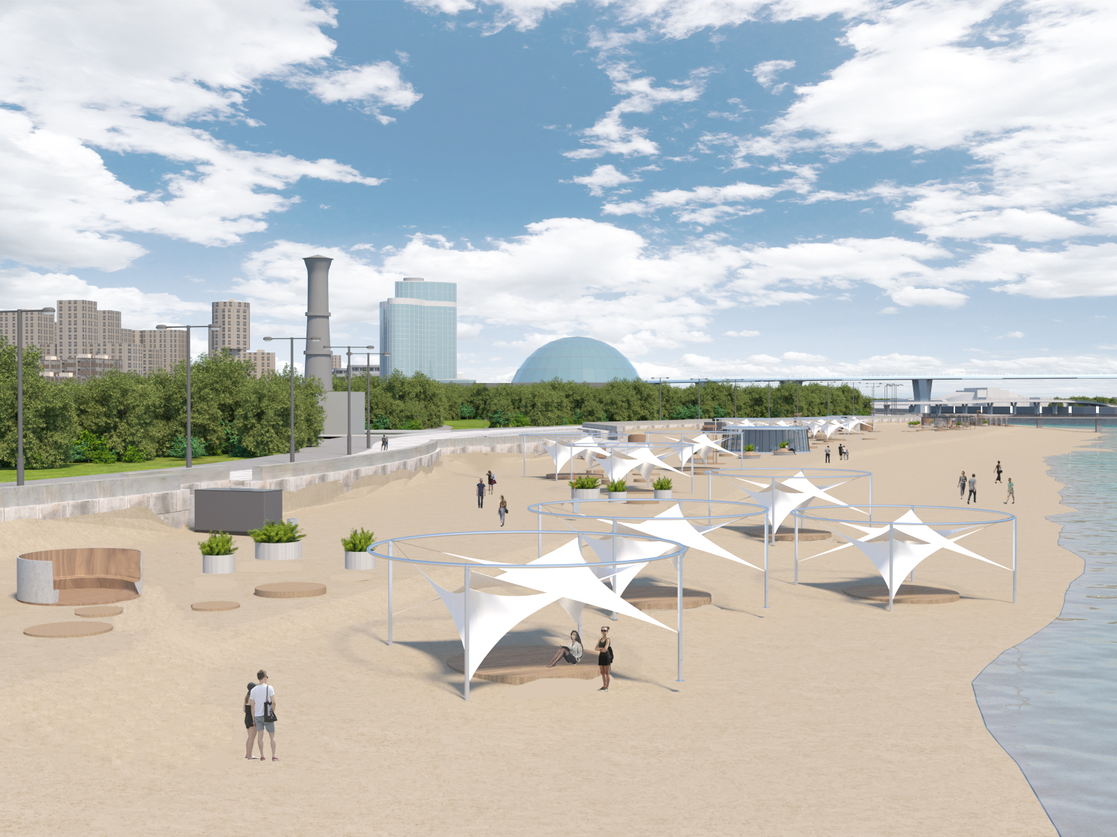 Данный проект благоустройства очень похож на тот, что обсуждался в марте. В опубликованных документах говорилось, что на берегу хотят организовать зоны для отдыха и занятий спортом, разместить кабинки для переодевания, теневые навесы, скамейки, парковки для велосипедов и колясок, обустроить подходы и спуски к воде.