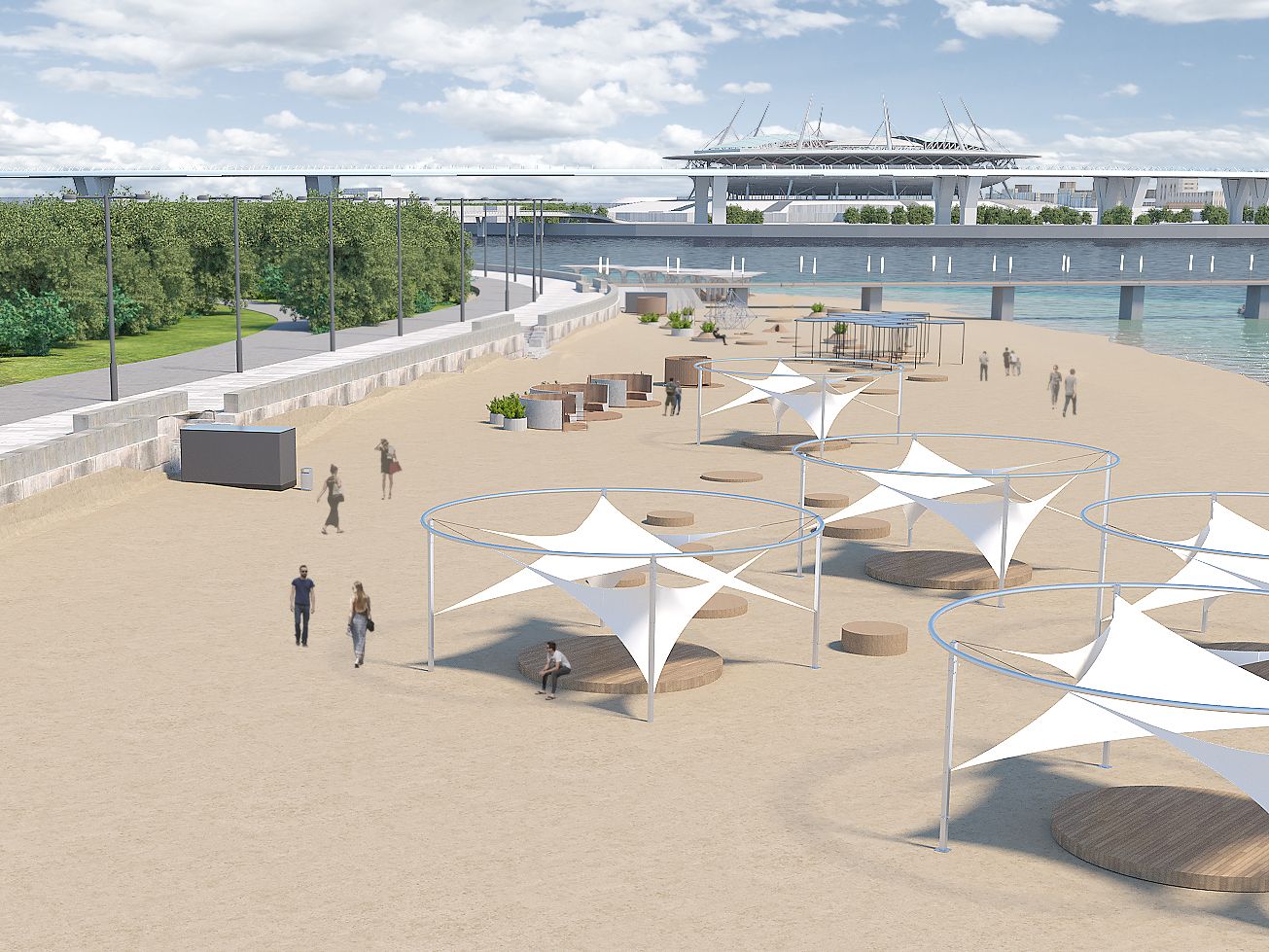 Благоустроить собираются 14,6 гектара пляжа (общая площадь парка — 39,5 гектара). Как рассказали в «Зенит-Арене», на пляже появятся дорожка для променада, кабинки для переодевания, качели, теневые навесы и оборудованные места отдыха, велопарковки.