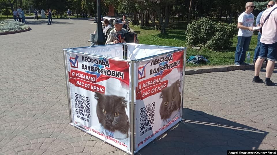 Кота зовут Леопольд Валерьянович. Агитация в его поддержку проходила в Первомайском сквере 4 сентября. "Кот ведет свою агитацию сам и с участием своих доверенных лиц и обещает избавить нас от крыс", – поясняется в публикации.