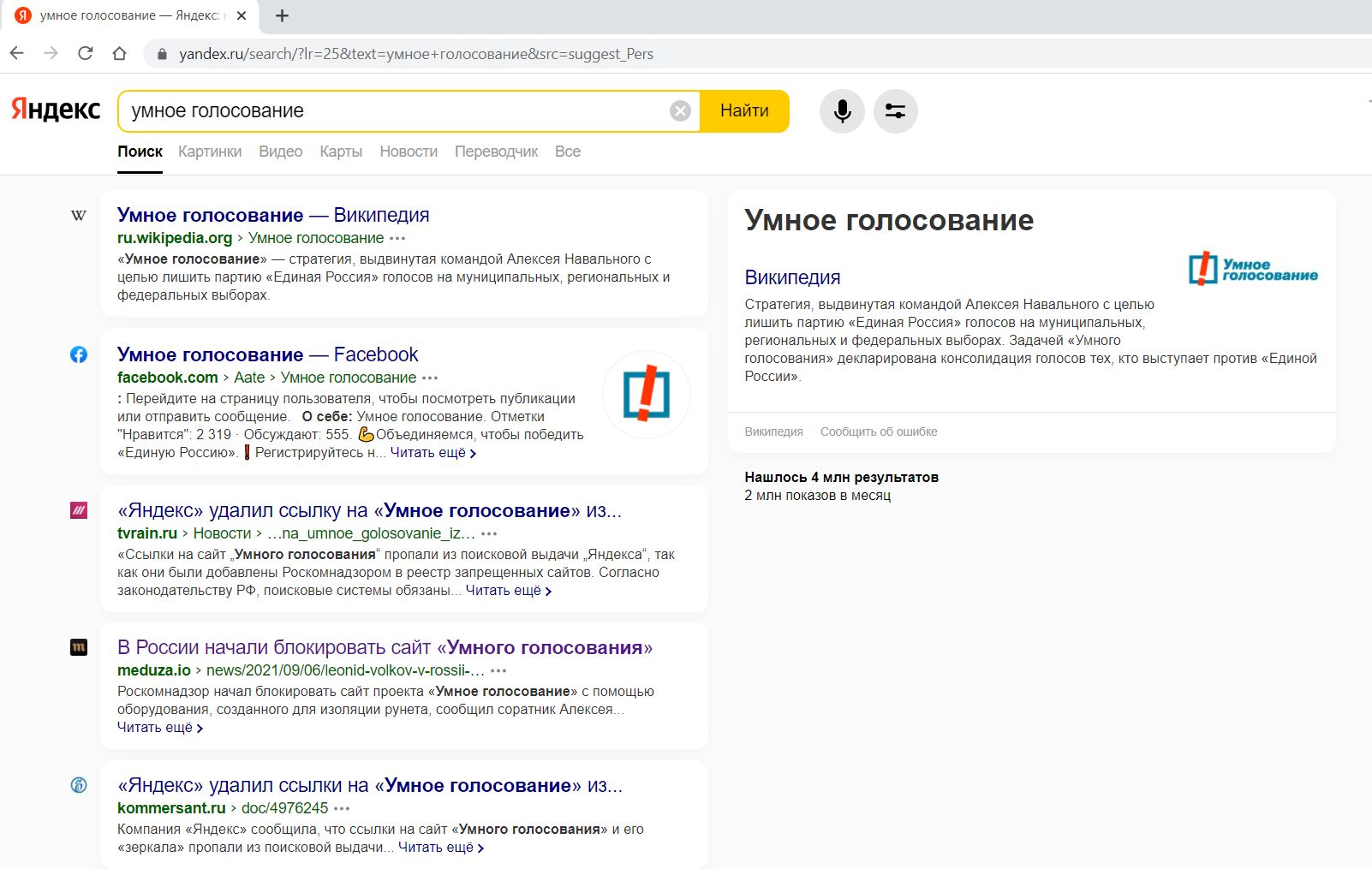За сутки до блокировок, 5 сентября Арбитражный суд Москвы запретил "Яндексу" и Google показывать в поисковой выдаче словосочетание "Умное голосование".