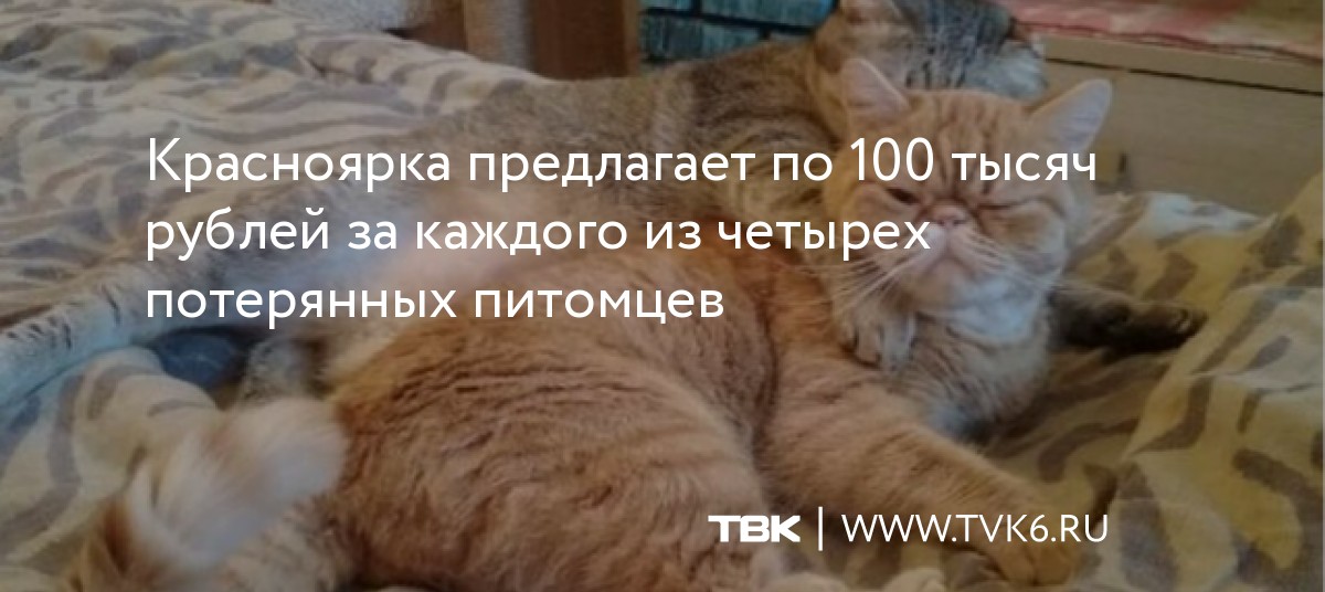 Красноярка предлагает по 100 тысяч рублей за каждого из четырех потерянных питомцев
