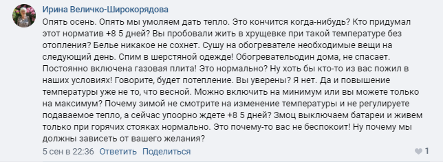 Петербуржцы просят ускорить подачу тепла и критикуют регламент. Они говорят, что у них не сохнет белье и им приходится спать в шерстяной одежде.