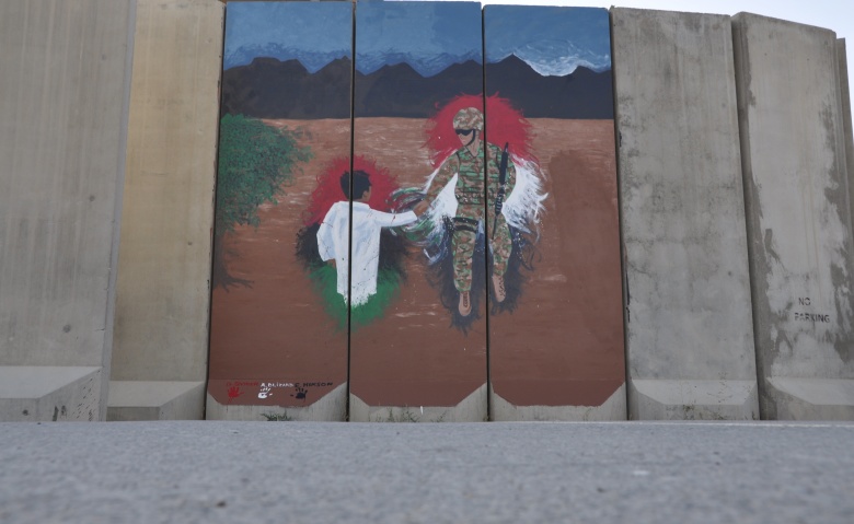 Мурал на бетонном заборе авиабазы ВВС США «Баграм» в Афганистане
