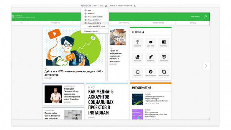 Совет Теплицы: как посмотреть мобильную версию сайта в браузере