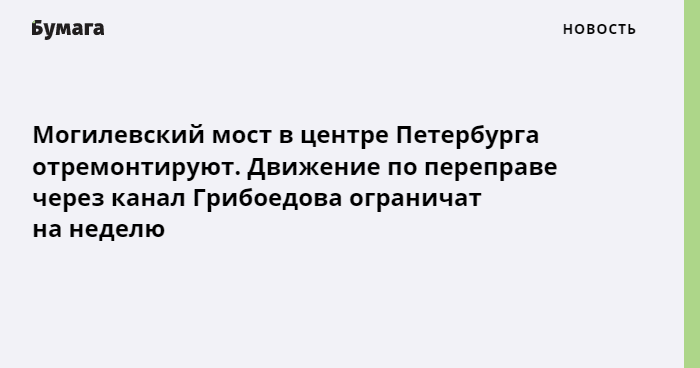 Ремонт продлится с 11 по 18 сентября. Дорожное покрытие на мосту начнут менять сразу после открытия примыкающего к переправе участка набережной канала Грибоедова, который недавно капитально отремонтировали.