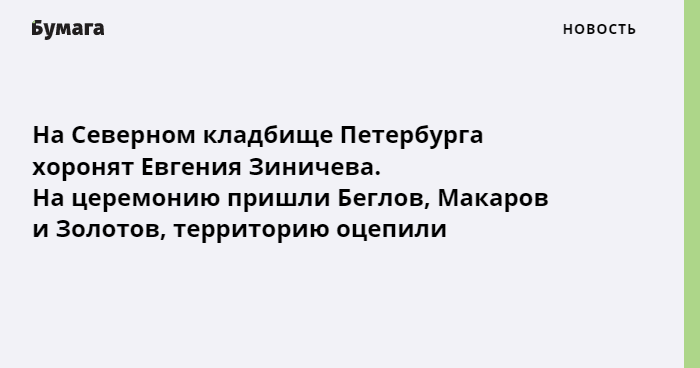 Znak.com сообщает, что территорию кладбища оцепили. Гостей пропускают через кордоны по документам и предупреждают, что при выходе обратно попасть не получится. На подъезде к кладбищу выстроилась спецтехника, передает «Фонтанка».
