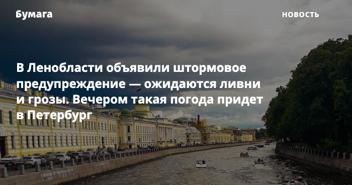 В Ленобласти объявили штормовое предупреждение — ожидаются ливни и грозы