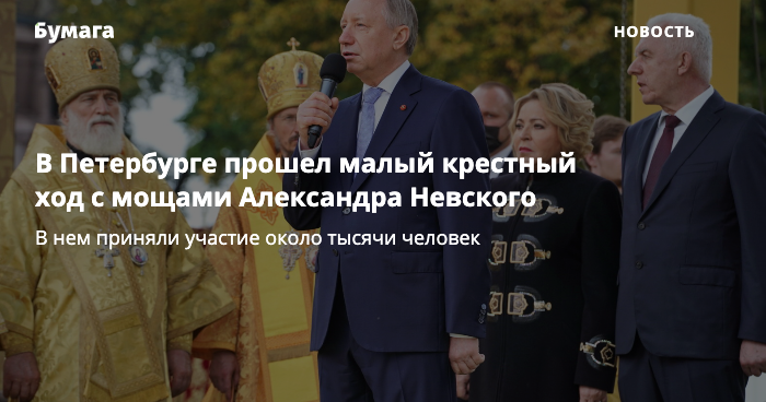 Как передает ТАСС, в крестном ходе участвовали Валентина Матвиенко, Александр Беглов, Александр Дрозденко. Чиновники не пользовались масками ни во время богослужения, ни во время крестного хода.